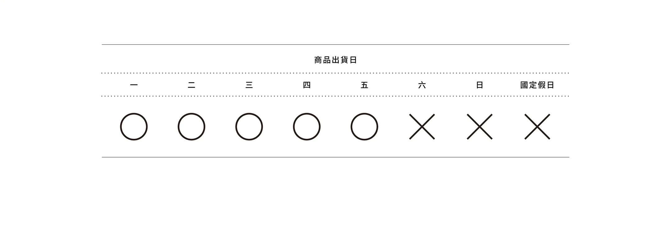 - 約7個工作天寄出,不含例假日。配送時間為週一至週五 10 ~ 6 pm,週六日無安排配送。