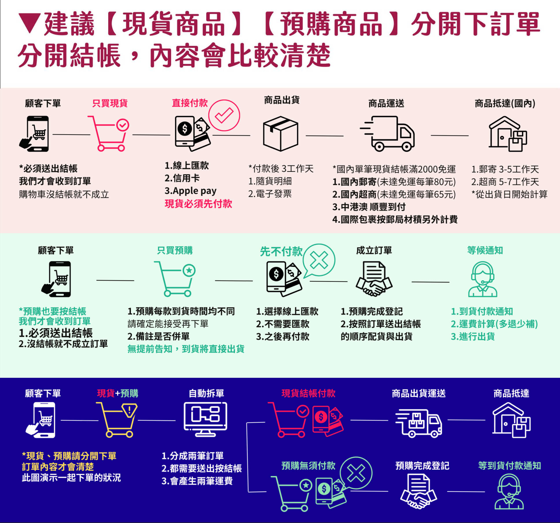 ※如遇週日及國定假日為休息日,暫停客服及出貨服務,我們將於上班時間 周一至周五 10:00-18:00 依序處理,還請您耐心等候,謝謝。